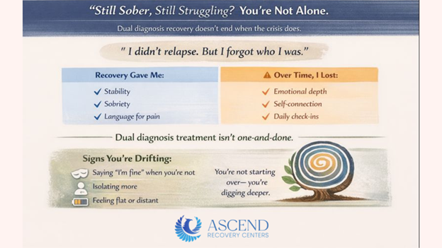 If you’ve been sober a while but feel stuck, disconnected, or just “off,” that’s not a failure. It’s an invitation. Ascend’s dual diagnosis treatment can help you reconnect—not just with your recovery, but with yourself.