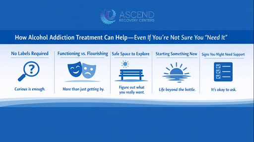 Alcohol addiction treatment isn’t just for people with a DUI or a destroyed marriage. It’s for anyone who feels like alcohol is taking more than it’s giving. If you’ve found yourself Googling “am I drinking too much?” after a night out or wondering if life might feel brighter with less wine in it, that’s enough of a reason to explore support.